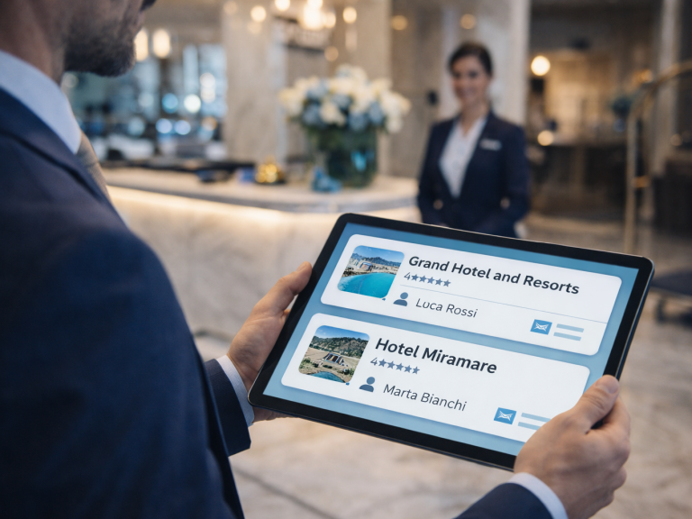 Profilazione delle strutture ricettive e identificazione dei referenti corretti per avviare accordi commerciali più rapidamente.
